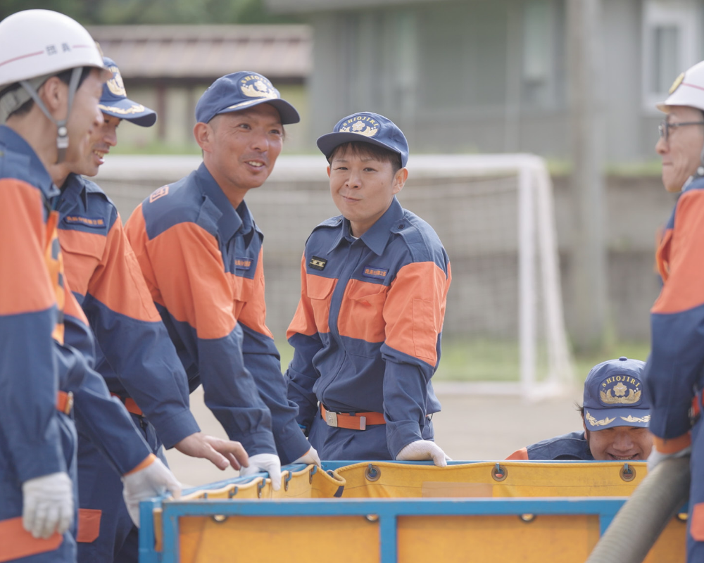 近年は男女問わず、さまざまな職業・年齢の方が活動の幅を広げています。地域とのつながりをつくるきっかけとして、移住者が入団するケースも増えてきました。団員たちはそれぞれの生活スタイルを大切にしながら「お互いさま」の気持ちで、消防団活動に参加しています。子育て中でも、体力に自信がなくても、無理のない形で関われるのが、今の消防団です。
