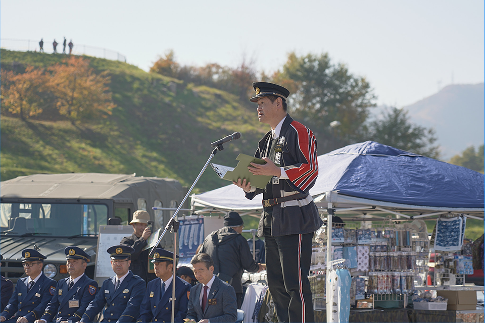 豊富な知識や経験に基づいて消防団員が安全に活動できるような指示を行い、必要な時には市内の分団だけでなく近隣市町村の消防団との横断的な連携を行うなど、塩尻市消防団で代々培われてきた統率力の源になっています。