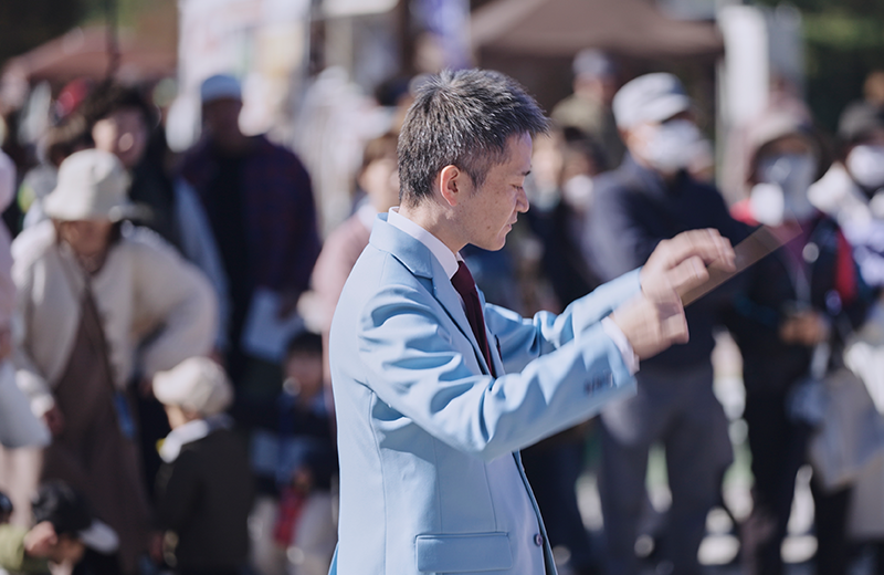 イベント演奏は、市民の皆さんに音楽を届けられる貴重な機会です。会場の雰囲気や来場されるお客さんの年齢層などを事前にお聞きして、アニメソングや演歌、J-POPなど、親しみやすい曲を中心に選曲しています。市内のイベント演奏は、だいたい1〜2か月に1回ほどあります。