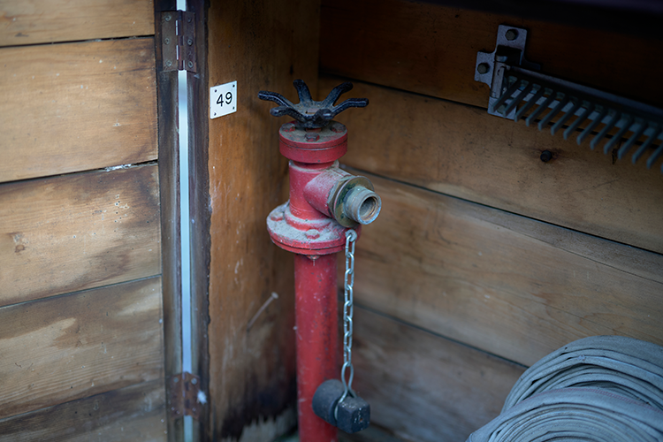 「重要伝統的建造物群保存地区」(重伝建地区)とは、歴史的な町並みと周辺環境が一体となった「歴史的風景」を形成し、その価値が特に高いと選定された地区のことです。文化財保護法に基づき、市町村が住民と協力して保存・活用を進めています。特に奈良井宿では、まち並みに溶け込むようにデザインされた消火栓が、狭い間隔で配置されています。格納されているホースは細型で、女性や高齢者でも扱いやすい仕様です。