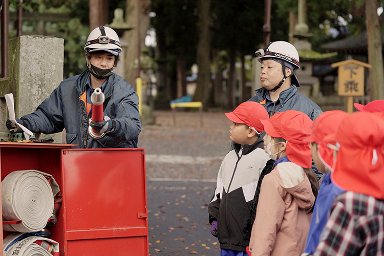 阿禮神社例大祭や、小坂田公園花火大会の警戒活動など、地域イベントの開催もサポートしています。塩尻東地区ふれあい運動会では、ホースと法被(はっぴ)をバトンにして消防リレーに参加し、運動会を盛り上げています。