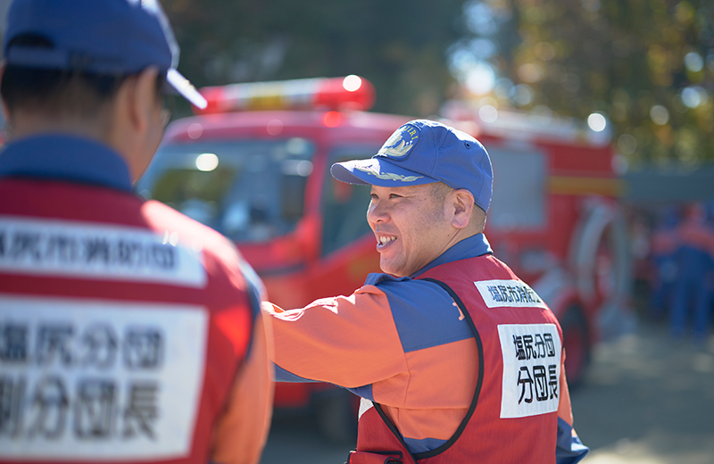 地元のお祭りに参加した際、同じ部会の先輩に誘われて入団しました。消防団のことは以前から知っていましたが、正直なところ「訓練が厳しくて忙しい」というイメージを持っていました。しかし実際に活動してみると、その印象は大きく変わりました。現在の主な活動は、毎月15日の「市民防火の日」で、訓練もありますが日数は多くありません。地域の先輩・後輩ともに仲が良く、皆さんいい人ばかりで充実しています。