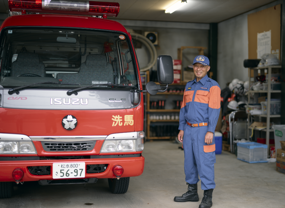 塩尻市内でも人口の減っている地(ち)いきや、わかい人が少なくなってきていることなどの影響(えいきょう)もあるのですが、新しく消防団員(しょうぼうだんいん)になる人が減ってきて、長年ずっと消防団員(しょうぼうだんいん)としてがんばっている人たちに支えられているのが現状(げんじょう)です。