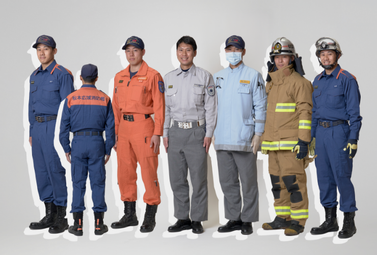 消防団(しょうぼうだん)は、普段(ふだん)それぞれみんな違(ちが)うお仕事をしていて、何かあったときには急いで現場(げんば)に向かいます。